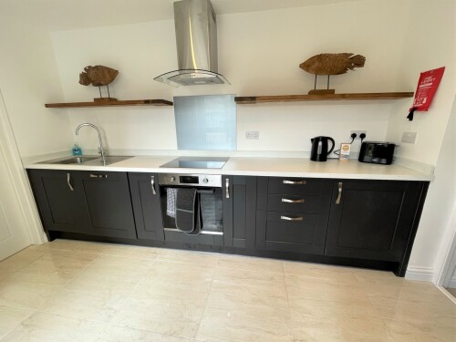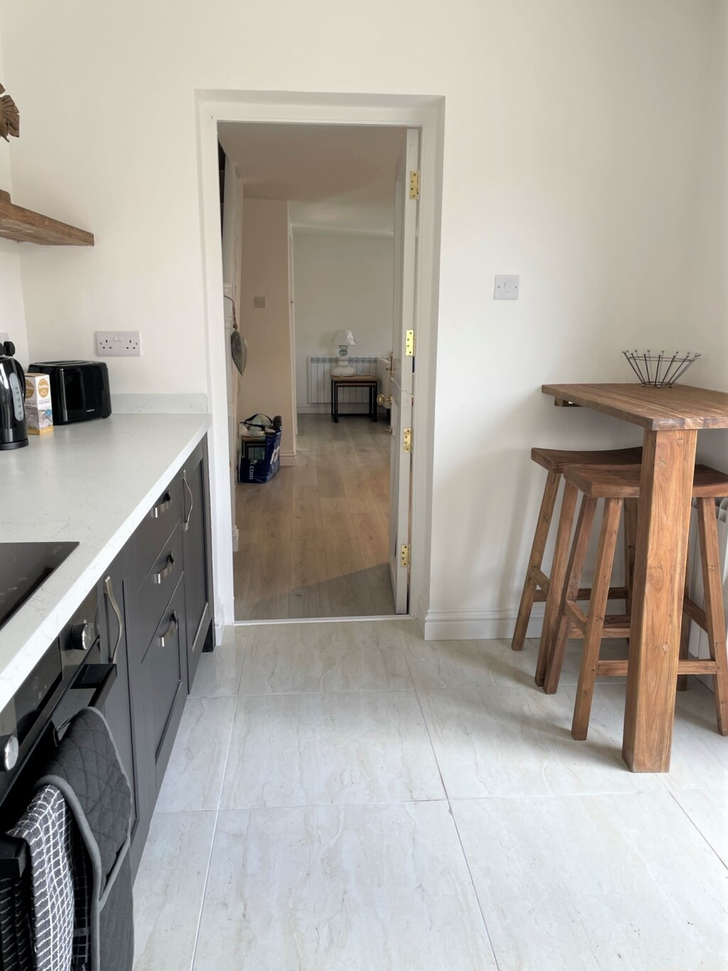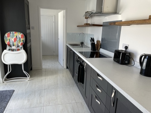 Kitchen: The cottage boasts a high spec newly fitted kitchen with all of the amenities you would expect, including a dishwasher . There are double doors leading to the patio and a bar table in the kitchen, making it a really sociable space.