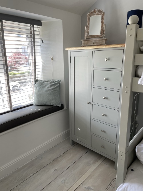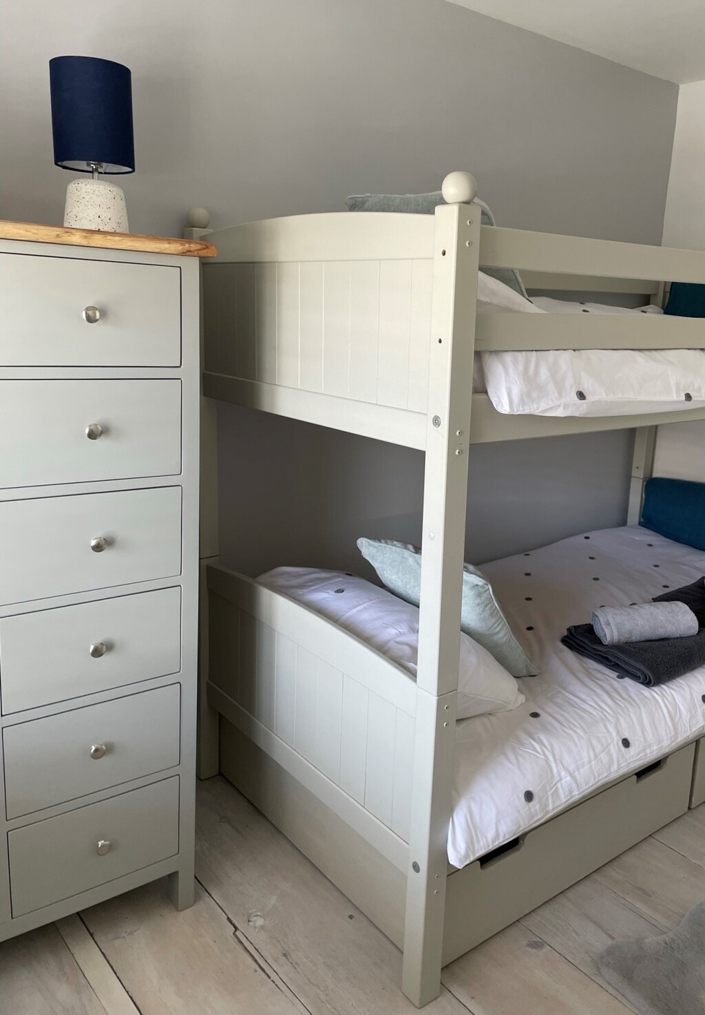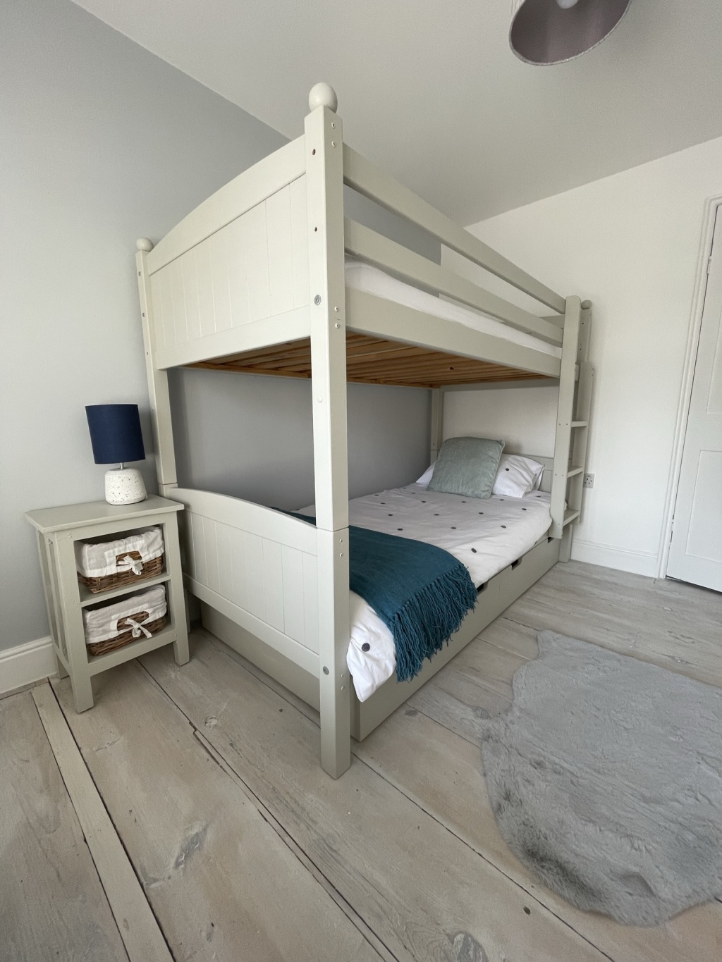 Bedroom Three: This room is at the front of the house and is great for children. It has comfortable bunk beds, a storage unit with hanging space and a window seat.