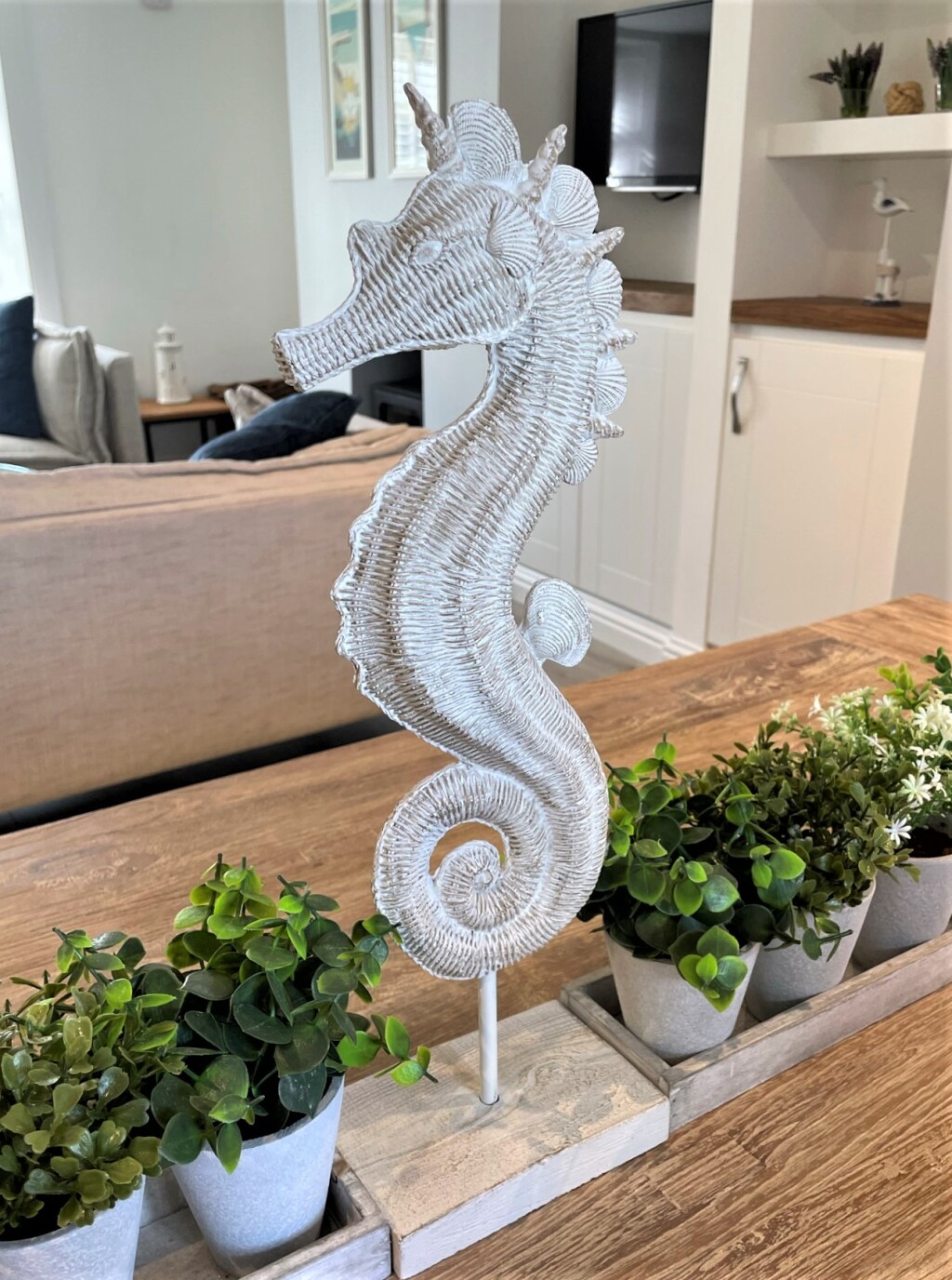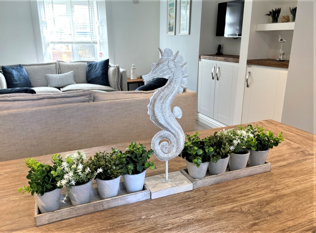 Outdoors: The Little Seahorse has a very generous rear garden, which is fully enclosed and perfect for dogs to explore. The garden has been divided into a lawn area and patio, with a selection of outdoor furniture for relaxing, dining