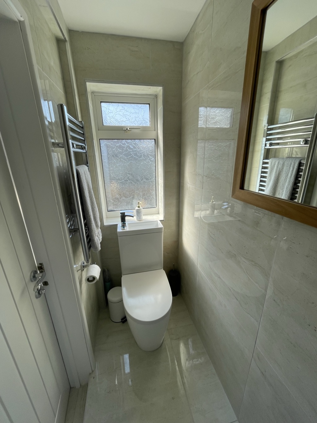 Shower Room: From the utility there is a newly fitted shower room with a waterfall shower, toilet and heated towel rail.
